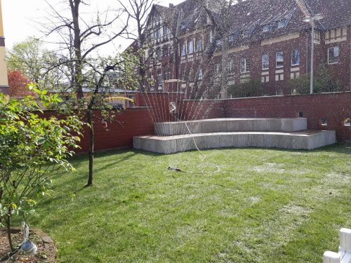 Der Bau des neuen Außengeländes der Villa Kunterbunt macht riesige Fortschritte. Täglich wird es schöner und man hört förmlich das Gras wachsen…